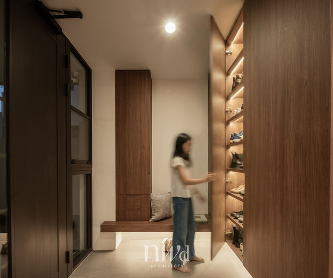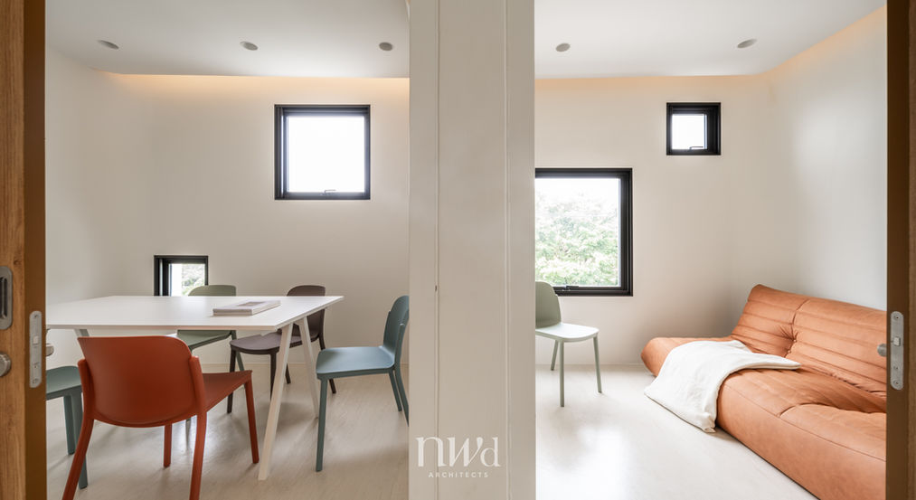The design strategy began with an exploration of various layouts, eventually settling on a "front-to-back" zoning. The front serves as an active interface for work and visitors, while the rear is a secluded sanctuary for the family. We intentionally subdued the scale and atmosphere of the entrance, allowing the interior to feel significantly expanded and more impactful as one transitions into the private domain.